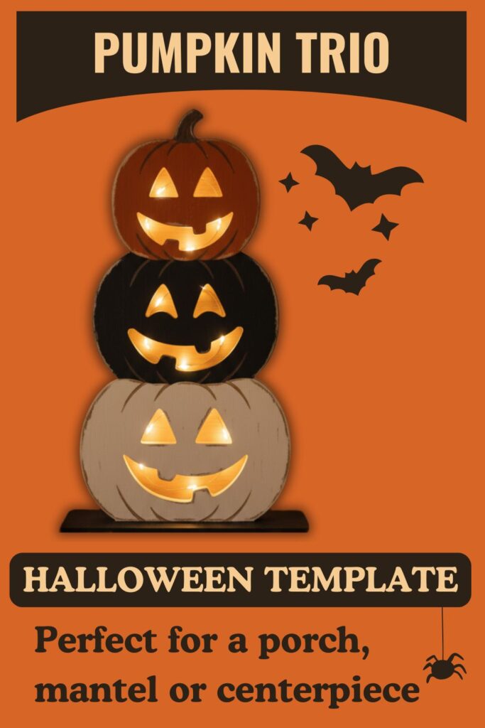 Unlike my step-by-step tutorials, this project is all about the template. You’ll get a printable pattern and some simple guidance so you can make your own version however you like. The finished Stacked Jacks measure about 9″ high (plus the thickness of your base) — the perfect size for a porch, mantel, or tablescape.