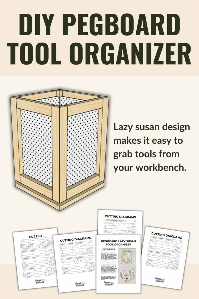 Build a rotating pegboard tool holder to keep screwdrivers, wrenches, and more organized and always within easy reach.